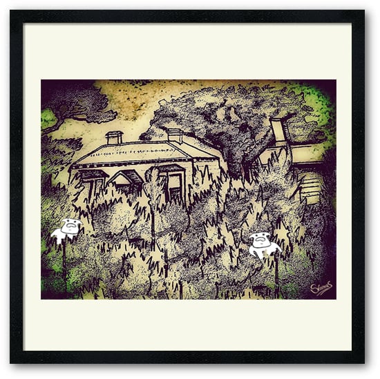 "When the young Spirit Cows reach the earthly plane, they diligently begin their search for one lost soul each to help. Here we can see two Spirit Cows searching in the bushes outside of The Heide Museum of Modern Art, in the suburbs of Melbourne, Australia. They have been attracted to the site by the lingering cosmic pain-bodies of those long since passed. When these Spirit Cows do each stumble across a human in need of existential comfort, they will bond with their new friend, helping them as much as they are able. It all depends on to what extent their chosen human will allow them to grow close, that they may be of use."